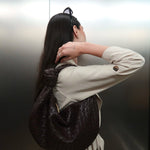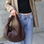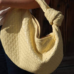 Keskmine õlakott Giselle, millel on sõlm, pakub sama skulpturaalset võlu nagu tema miniatuurne vaste, pakkudes samas lisaruumi sinu liikumises vajalikele asjadele. Erakordse punutud tekstuuri ja kunstipäraselt sõlmitud sangaga on see keskmise suurusega õlakott vaevatu stiili ja praktilise mugavuse kombinatsioon. Valmistatud kvaliteetsest vegan nahast, on see kerge ja piisavalt mitmekesine igapäevaseks kasutamiseks.