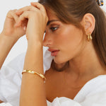 Sisene ajatu elegantsi maailma Adalyn kullatud käevõruga, mis kehastab vaevatut võlu koos Kreekast inspireeritud graatsia puudutusega. Õrnalt keeratud disain ja särav viimistlus muudavad selle käevõru luksuslikuks lisandiks nii igapäevastele kui ka peenematele välimustele. Selle libisev stiil muudab selle ideaalseks valikuks päeva ja öö vahel liikumiseks.