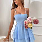 Seljatu mini kleit toob teie garderoobi lõbusa vaimu ja kaasaegse elegantsi. Kihilise seelikuga ja kaunite lipsudega rihmad loob see julge, kuid naiseliku välimuse, mis sobib ideaalselt õhtustele väljaminekutele või erilistele juhtumitele. Kerge, võrgutav ja enesekindel, see rõivastus tagab, et tunnete end iga sammu juures hämmastavalt ja elegantselt.