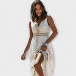 Kleidi Érica voogav siluett ja elegantne pitsimuster teevad sellest mitmekesise valiku, mis sobib ideaalselt päevast öösse üleminekuks, alati ajatu boho puudutusega.