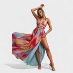 Karina - Elegantne ja Värske Kleit loob unustamatu sisenemise oma voolava silueti ja elava akvarellidisainiga. Täiuslik mereäärseteks pidudeks, troopilisteks puhkusteks või igaks hetkeks, mis nõuab silmapaistvat elegantsi.