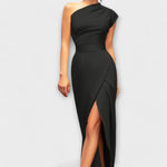 Aegumatu elegants: kleidi asümmeetriline disain ja kaldu krae annavad teie välimusele sofistikeeritud puudutuse.
