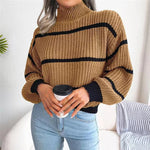 Ümbritse end vaevatu rafineeritusega meie Sarah Kõrge Kaelusega Moesviitriga. Selle laia lõike ja elegantsete laternamanustega pullover on ideaalne juhuslikuks välimuseks sügis-talvisel hooajal. Ajatu triibuline disain ja soe kõrge kaelus lisavad mugavusele veel ühe kihi, muutes selle igasuguste ürituste jaoks mitmekülgseks rõivaks.