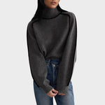 See kampsun ühendab lihtsuse ja detailid, kontrastsete servadega ja lõdva kõrge kaelusega disainiga. Selle avar siluett muudab selle ideaalseks teiste riiete peal kandmiseks, pakkudes puhtat ja rafineeritud välimust.